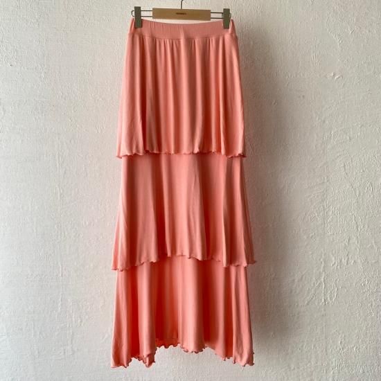 着心地の良い柔らかな細いリブ生地をふんだんに使用し、カジュアルながらも華やかなスカートに仕上がりました