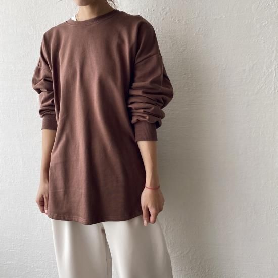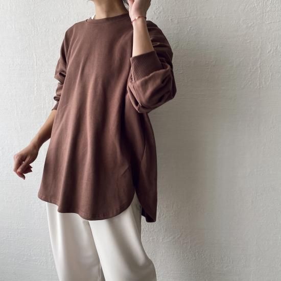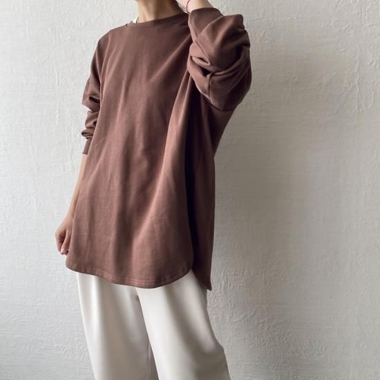 長めの着丈と程よいゆったりシルエットがヒップ周りをカバーし、一枚でさらっとカッコよく決まるスウェットです。