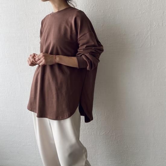 程よく肉感はありつつも厚すぎずさらっと着れるソフトな生地感で着心地も軽く、カットソー感覚でご着用いただけます。