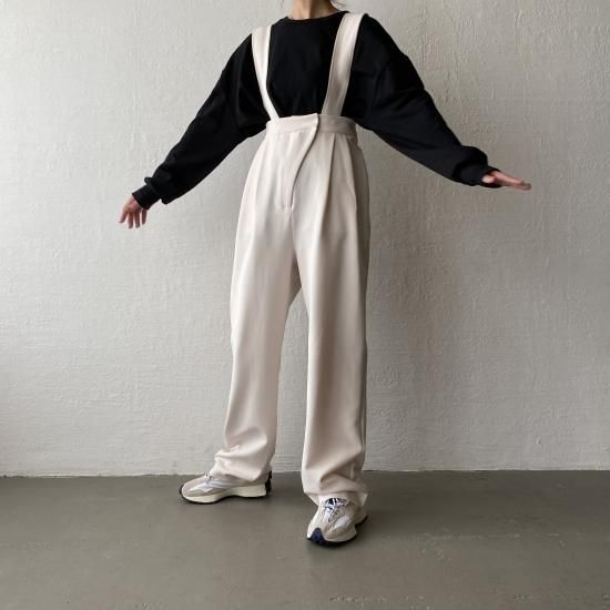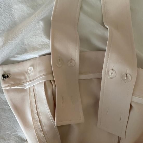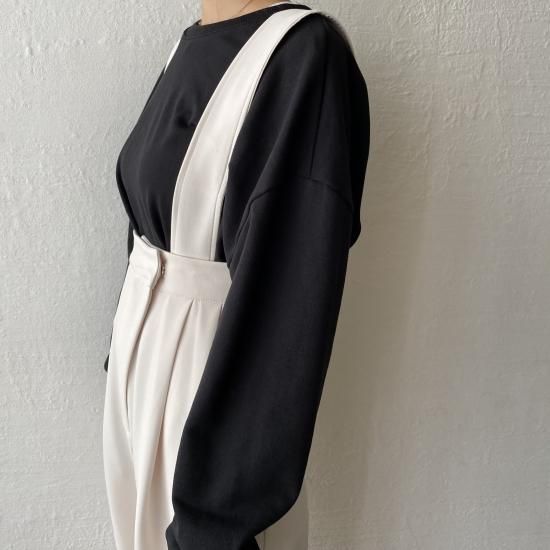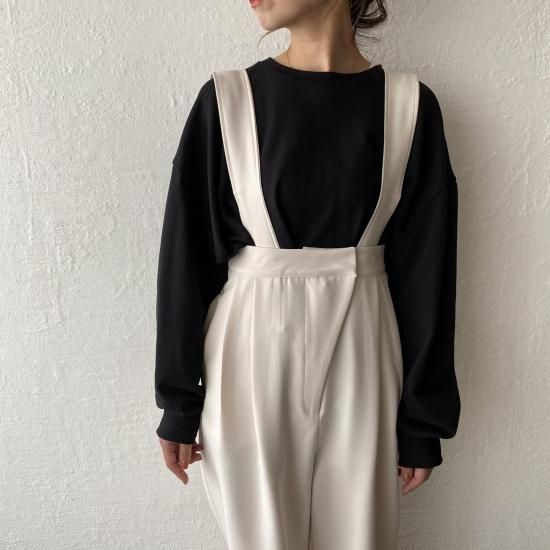 同生地のサスペンダーをつける事で胸下辺りでご着用いただける事もでき、脚長効果も抜群です。