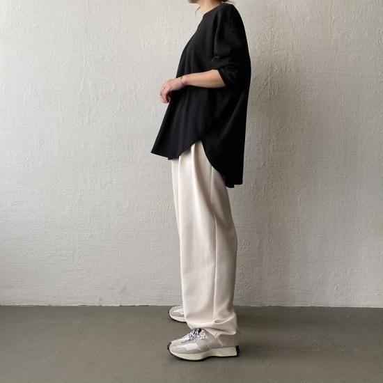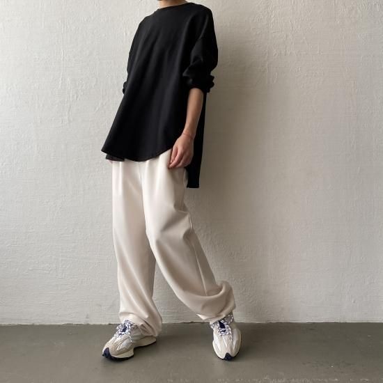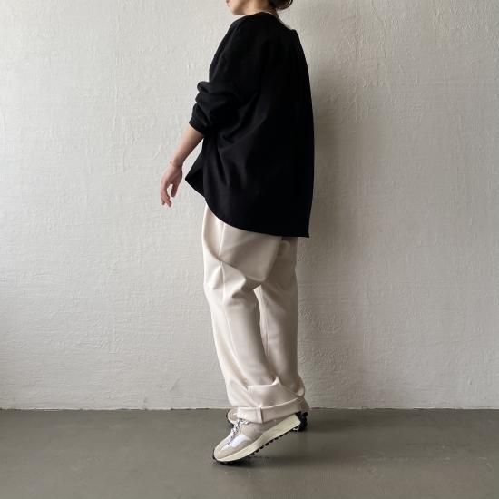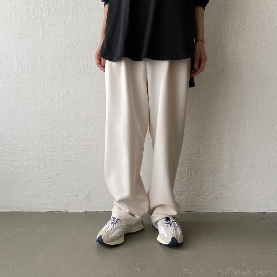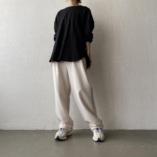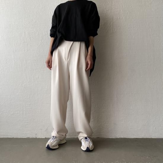全体的にゆったりとしたシルエットで、スニーカーにもヒールにも合わせていただきやすくカジュアルにもキレイめにもお召しいただけるパンツ。