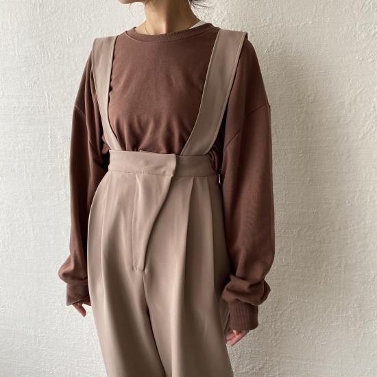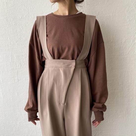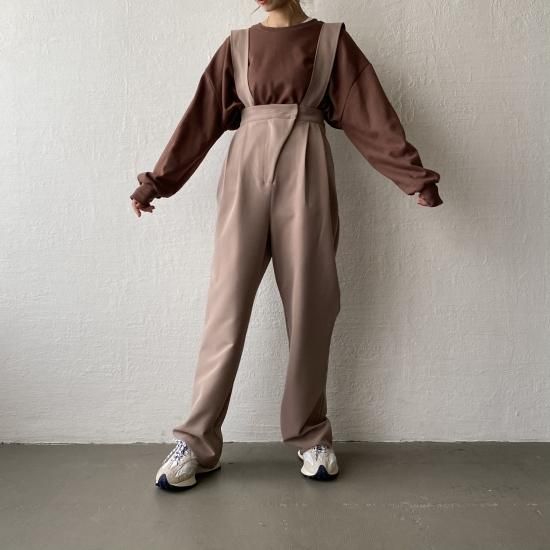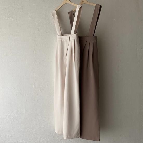同生地のサスペンダーをつける事で胸下辺りでご着用いただける事もでき、脚長効果も抜群です。