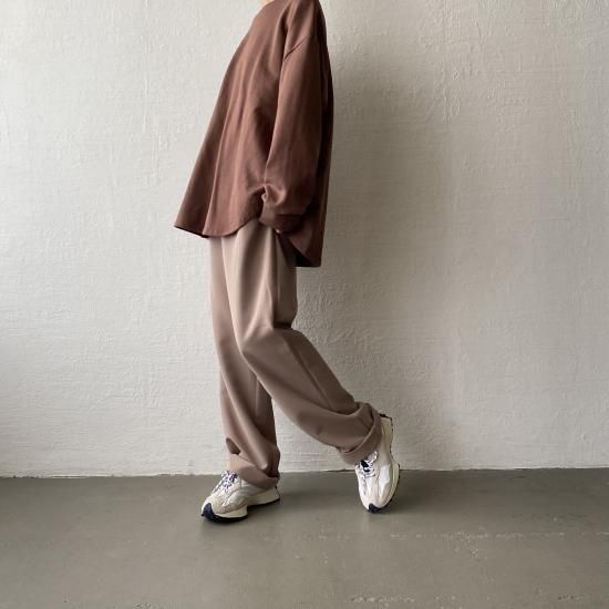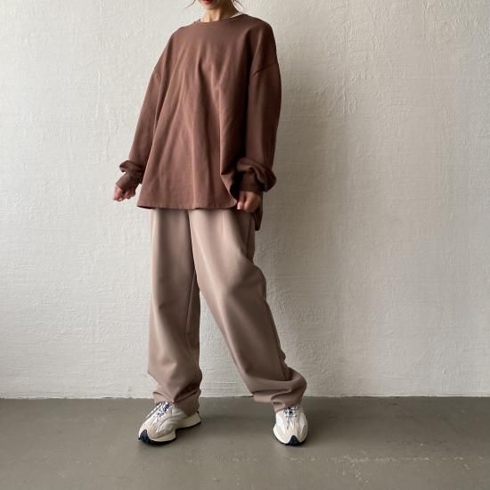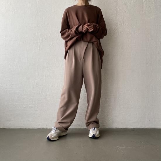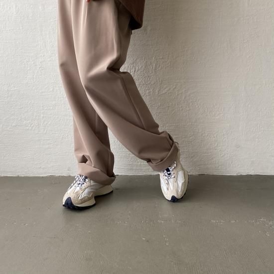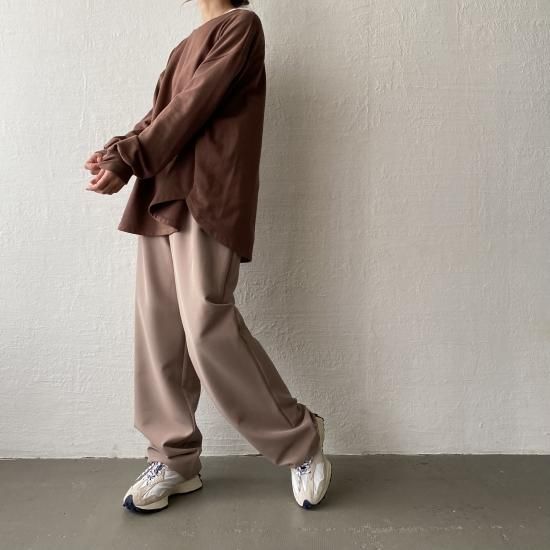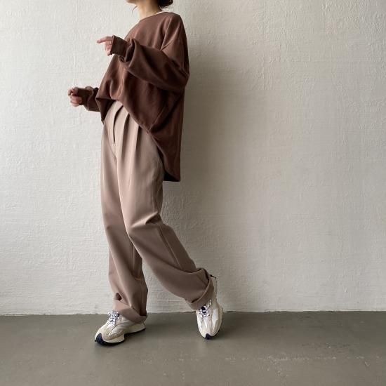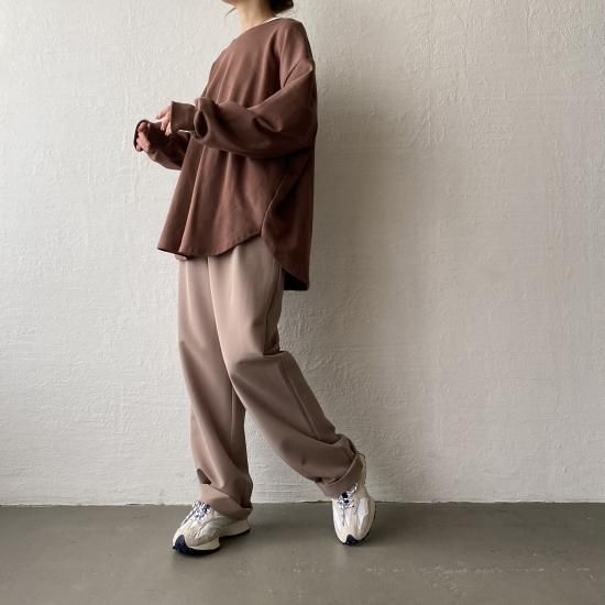 全体的にゆったりとしたシルエットで、スニーカーにもヒールにも合わせていただきやすくカジュアルにもキレイめにもお召しいただけるパンツ。