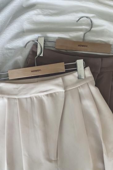 ウエストフロント部分のデザインが特徴でシルエットを重視し、こちらのパンツはゴムなしになります。
