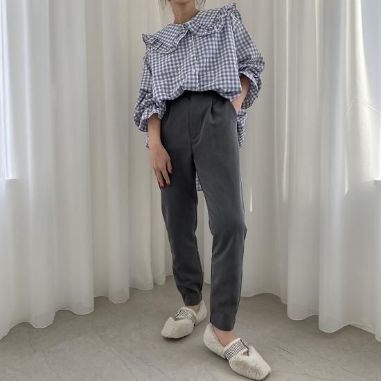 落ち感のある素材で、大人っぽくきれいに穿けるジョガーパンツ