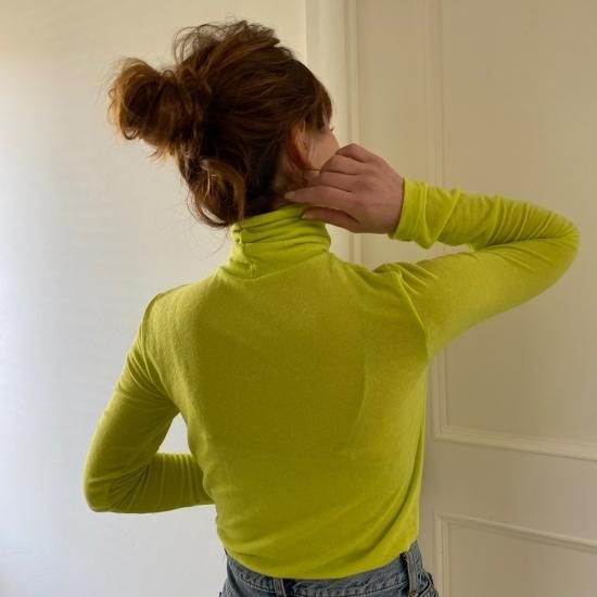 レイヤードスタイルのインナー使いにおすすめのシアータートルニット