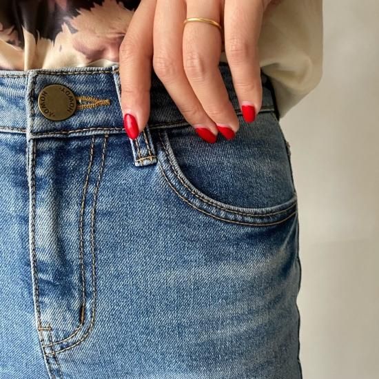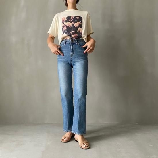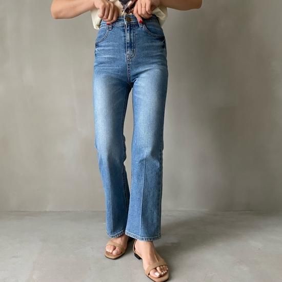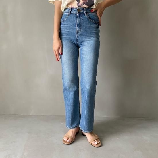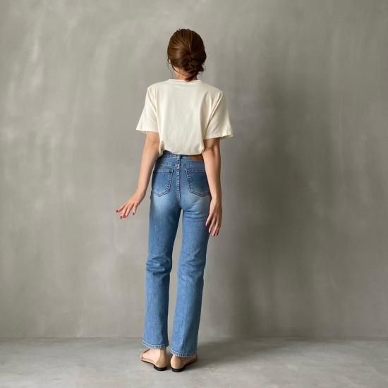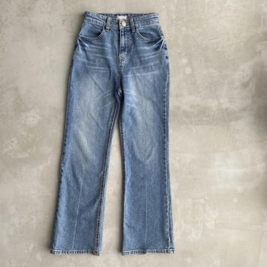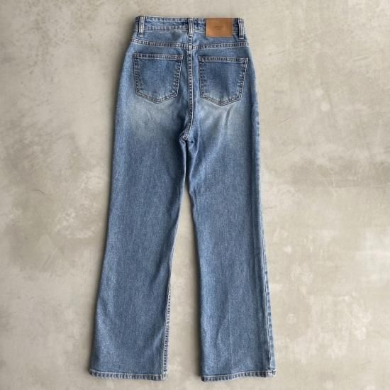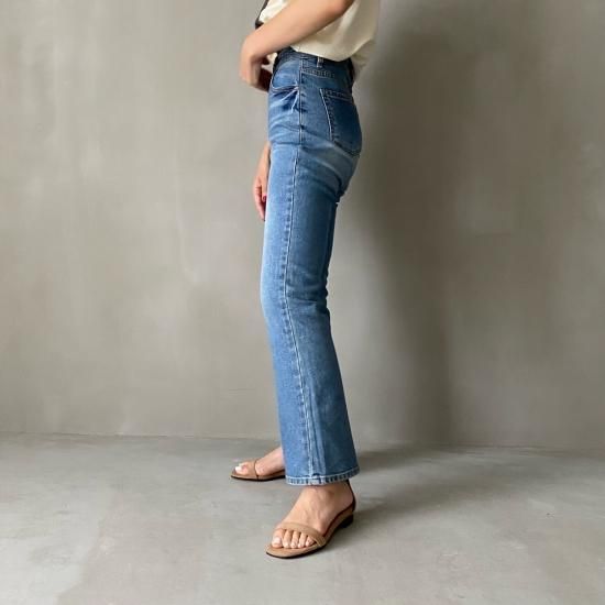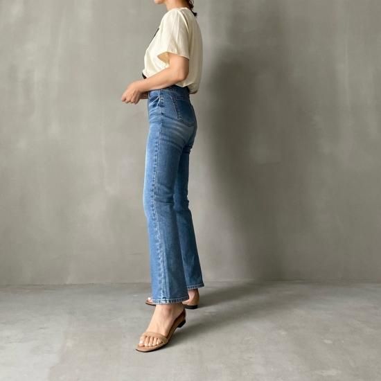 深めの股上が腰回りをすっぽりと包み込みヒップラインからウエストにかけて、綺麗な曲線を描くことでスッキリとご着用いただけるハイウエストのフレアデニム