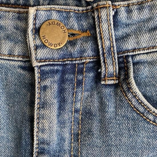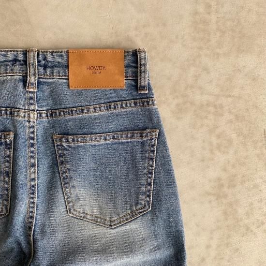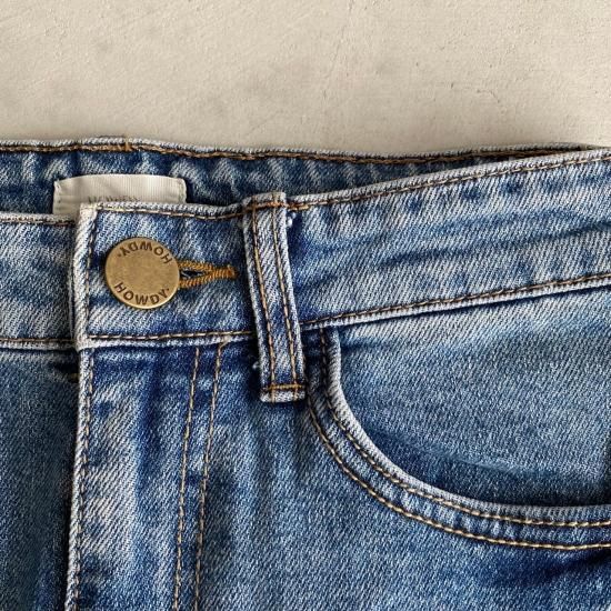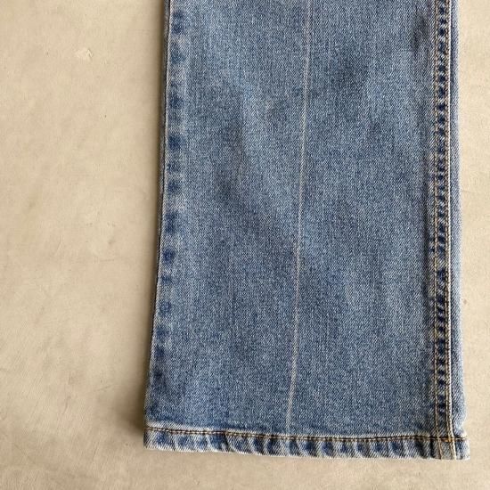 高めのバックポケットの位置、ヒザ位置と裾に向けたフレアの分量、ヒザ下のセンタープレス等、何度も修正し、脚全体を綺麗にスラッと見せてくれるデニムに仕上がりました