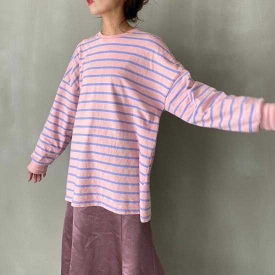 ボーダーの配色が可愛い、たっぽりオーバーサイズ Tee