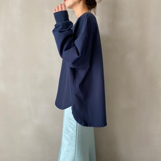 長めの着丈と程よいゆったりシルエットがヒップ周りをカバーし、一枚でさらっとカッコよく決まるスウェット