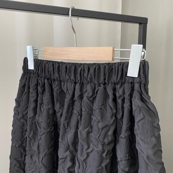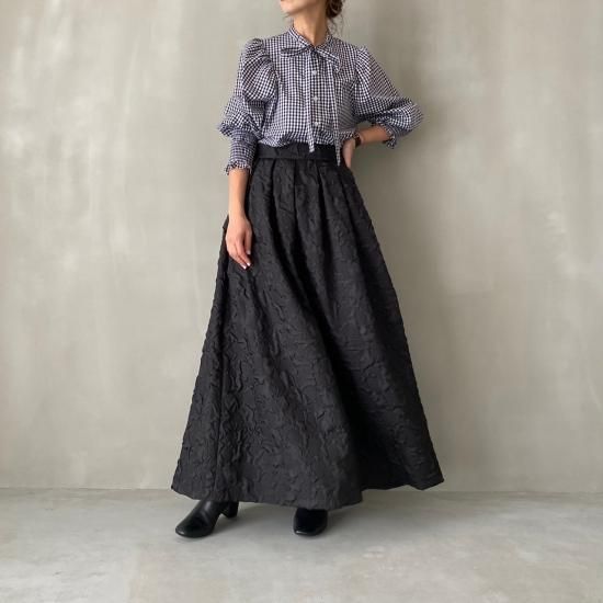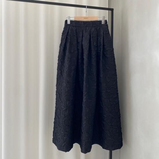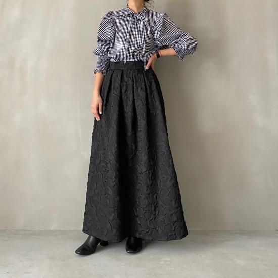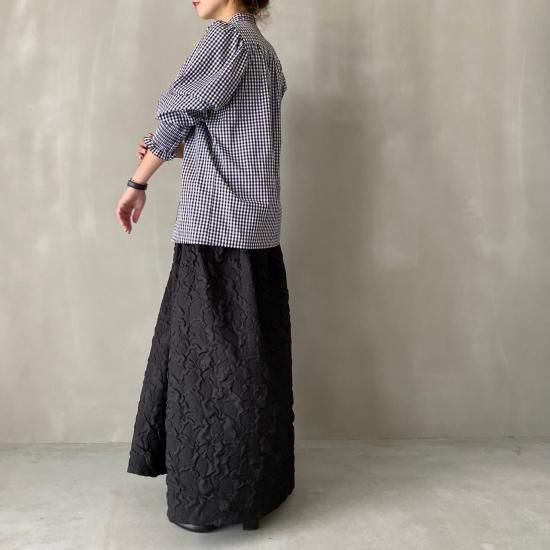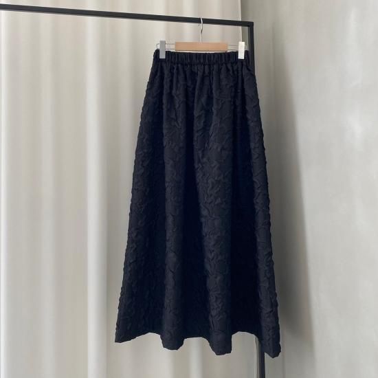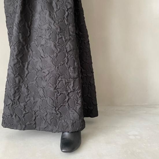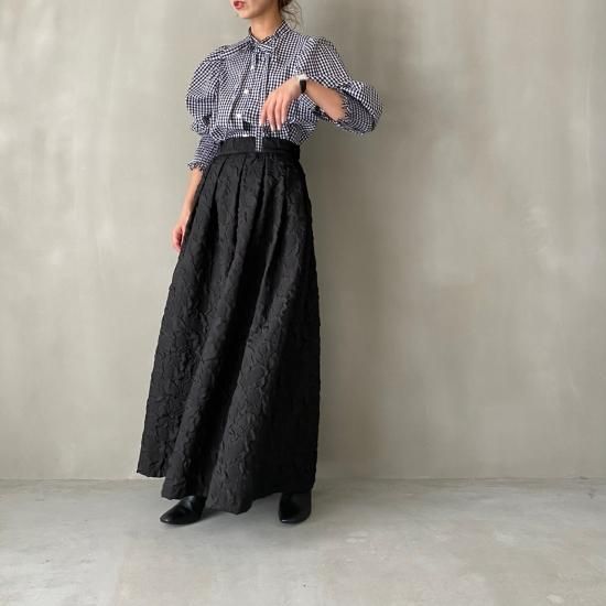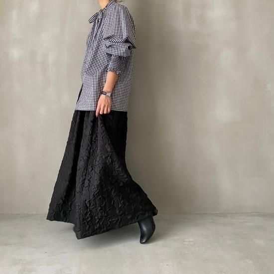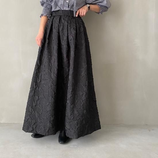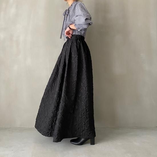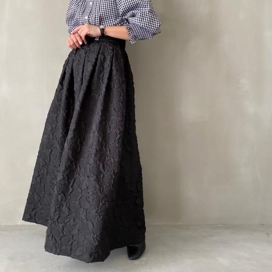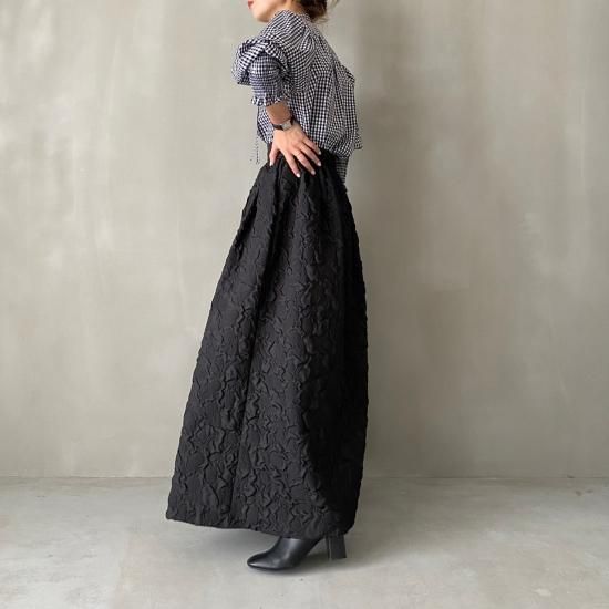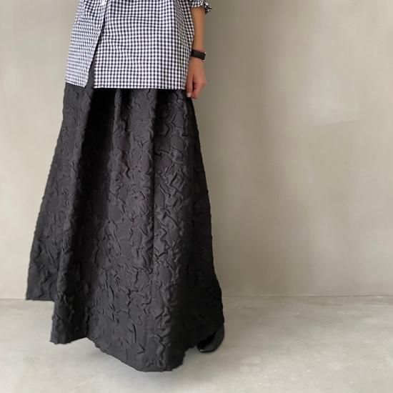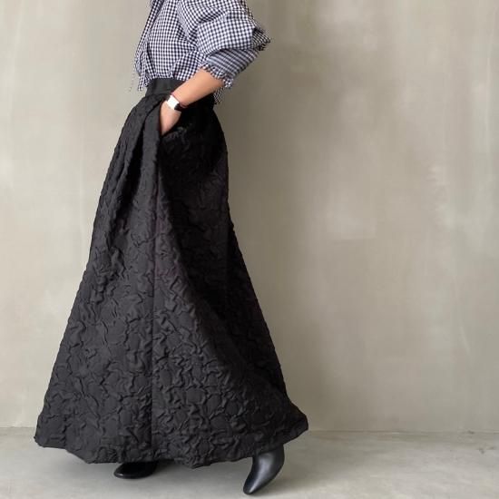 程よい肉感とマットな質感が絶妙なフクレジャガード生地を贅沢に使用したマキシ丈のスカートです