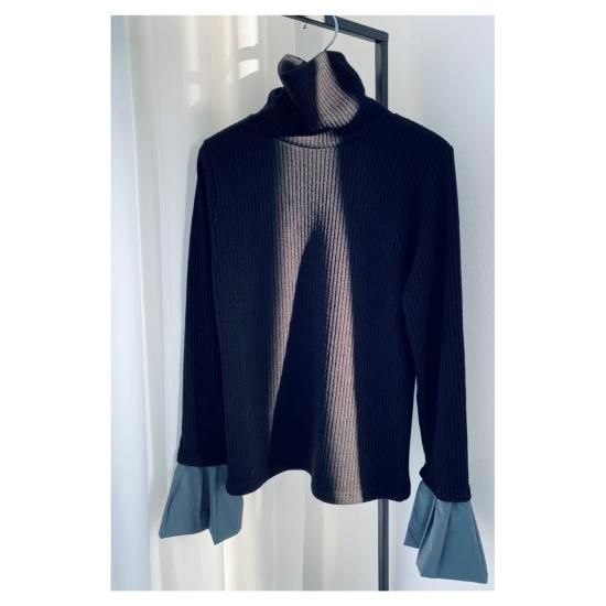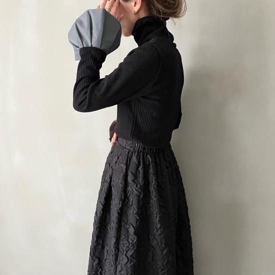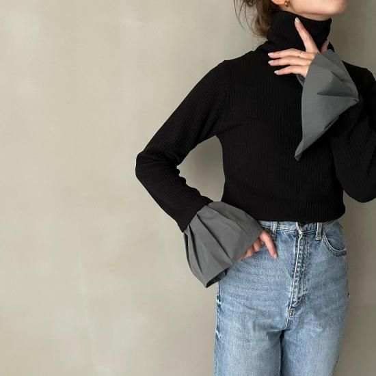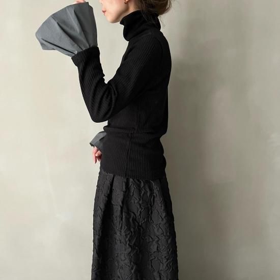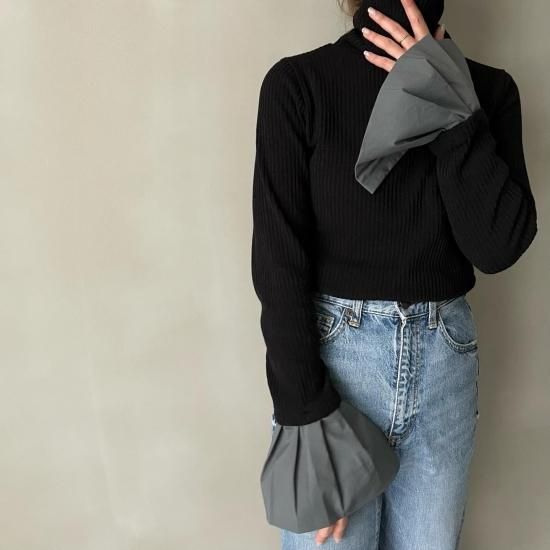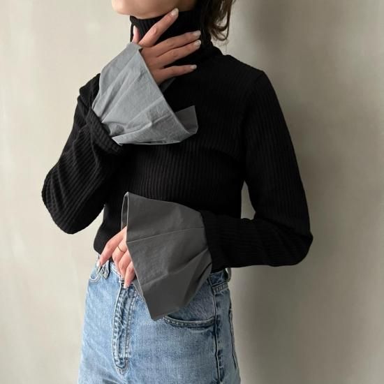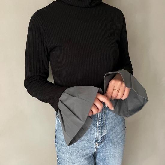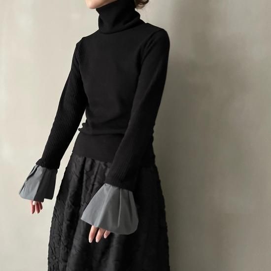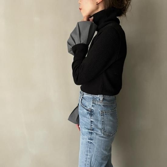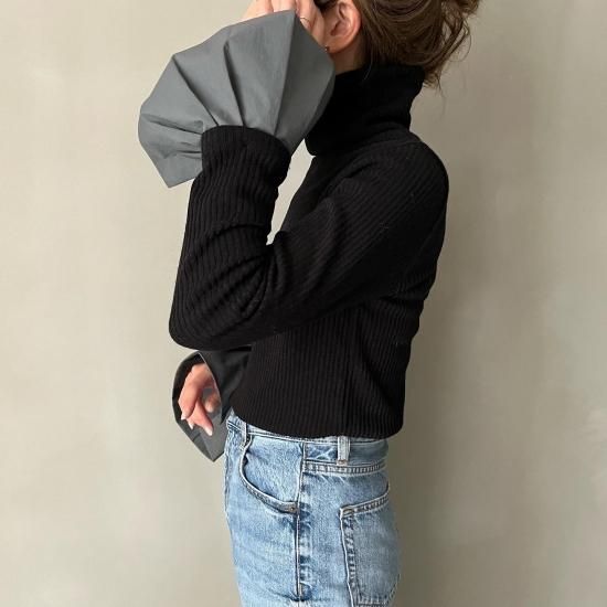 異素材を組み合わせたバルーンスリーブは着け外し可能で2wayでご着用いただけるタートル