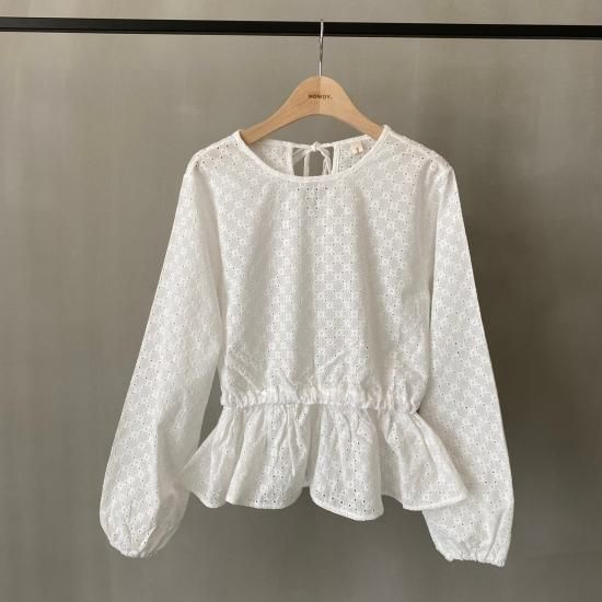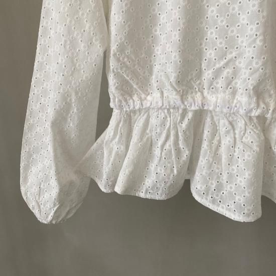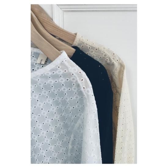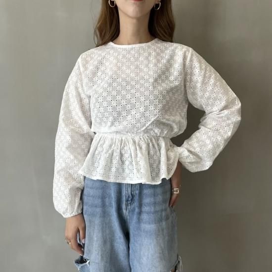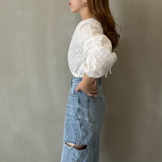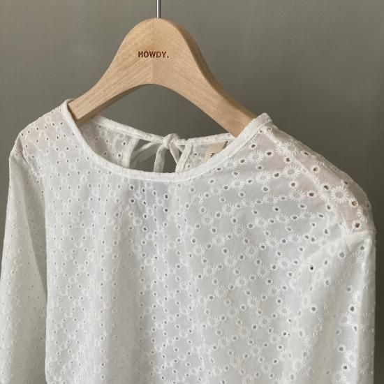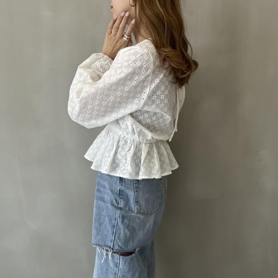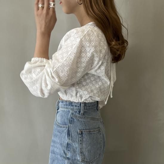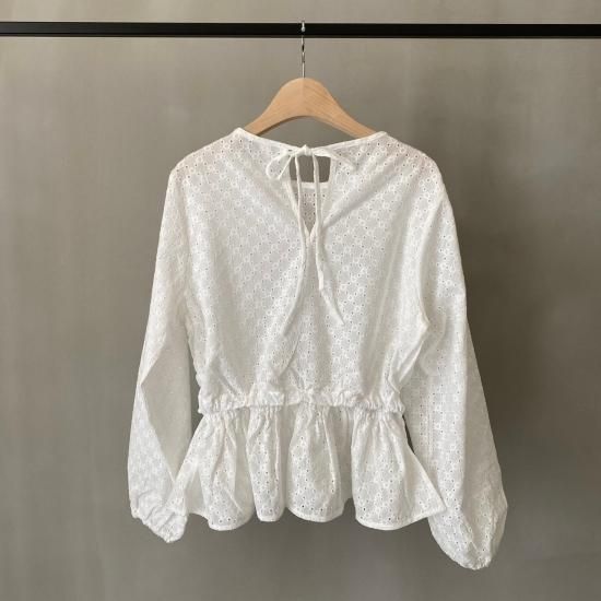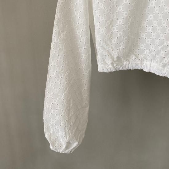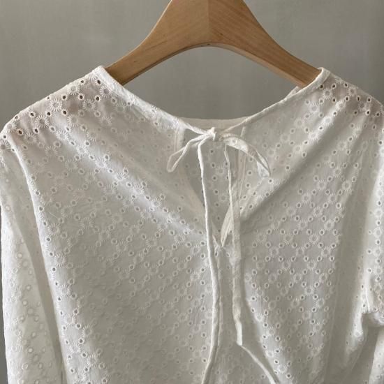 甘さを抑えた繊細なアイレットレースが美しい2wayブラウス