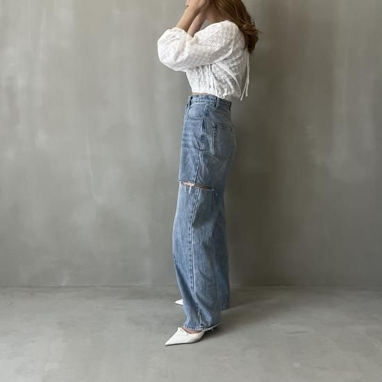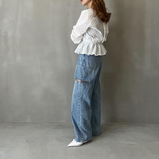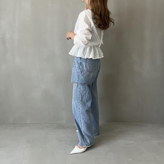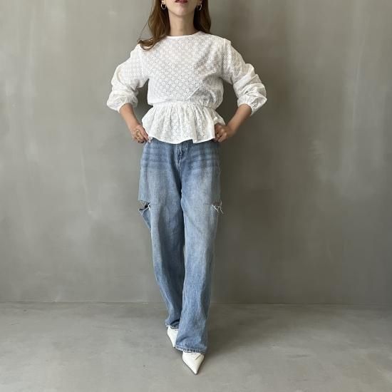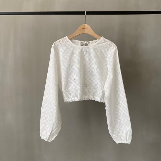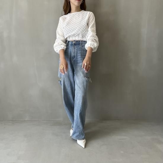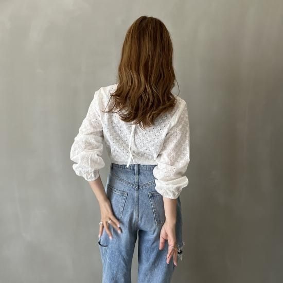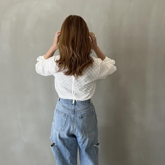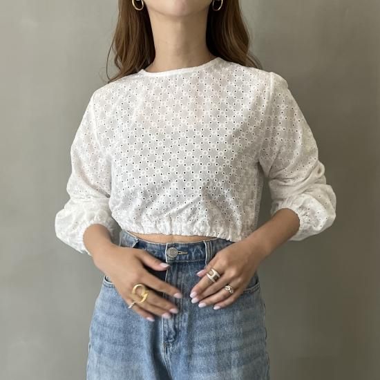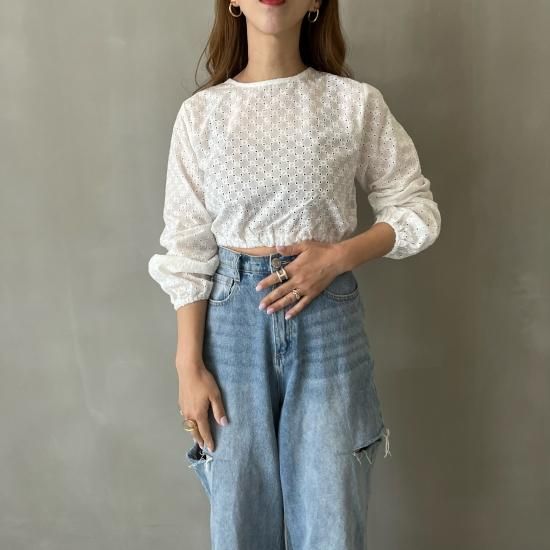 クロップド丈もアイレットレース地でレディライクなスタイリングを完成させてくれます