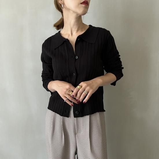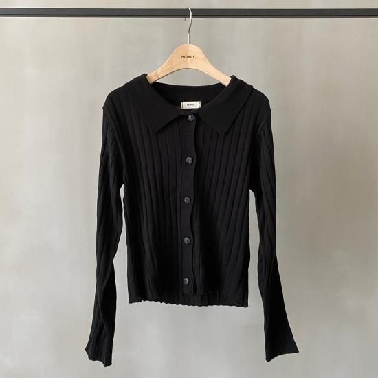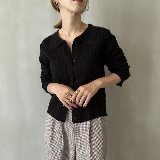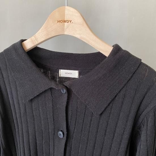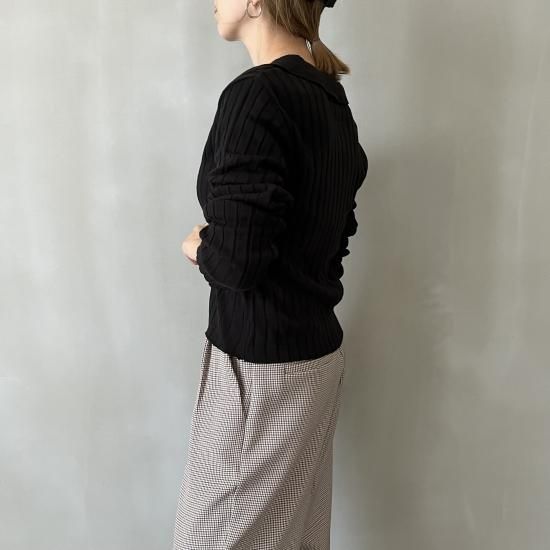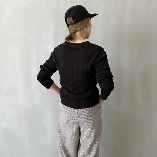プルオーバーのようにも、カーディガンとして羽織りとして着ることも出来る襟付きニット