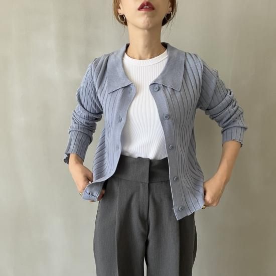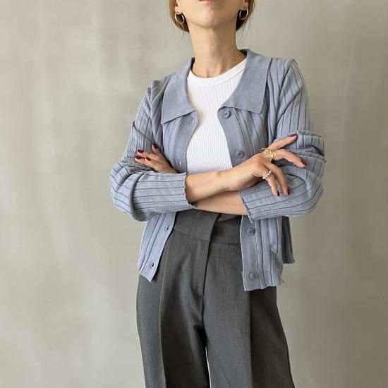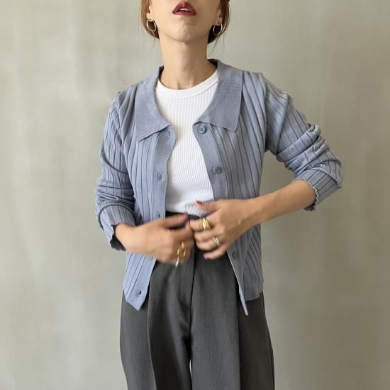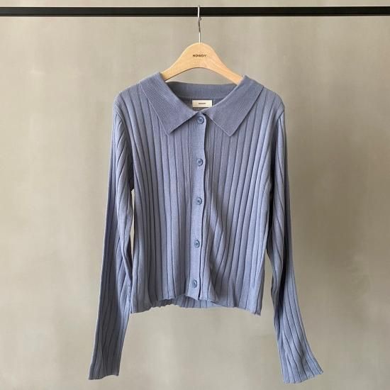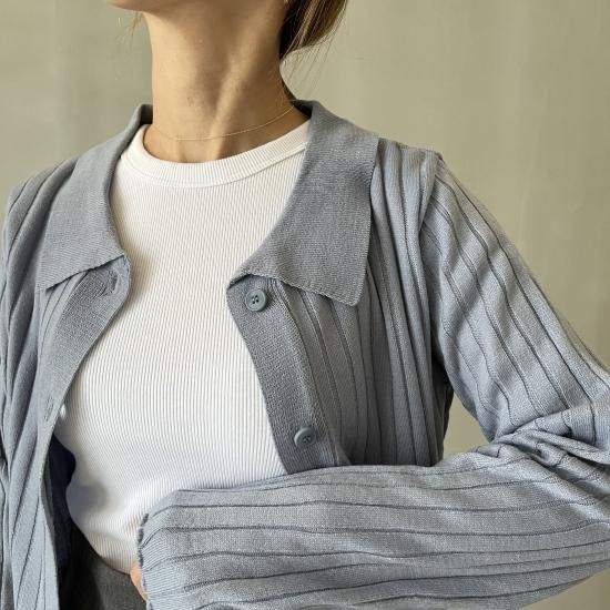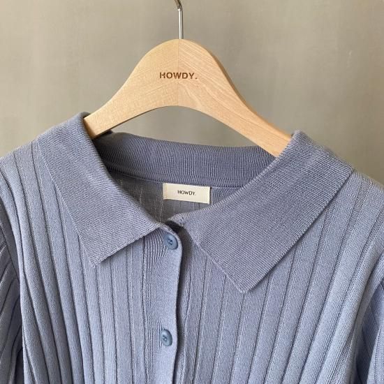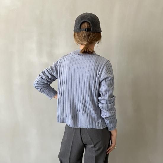 プルオーバーのようにも、カーディガンとして羽織りとして着ることも出来る襟付きニット