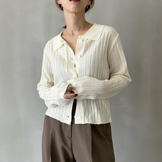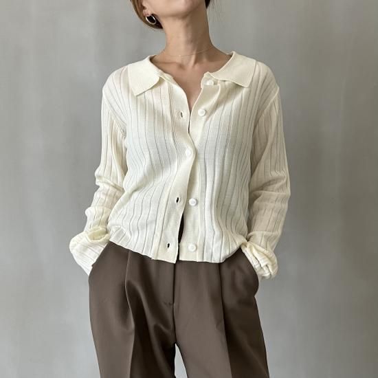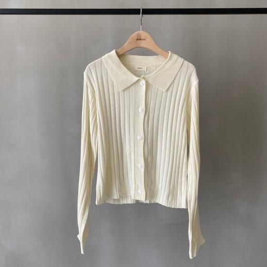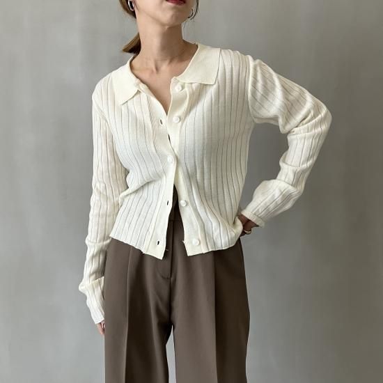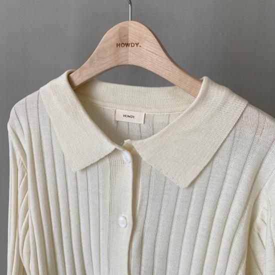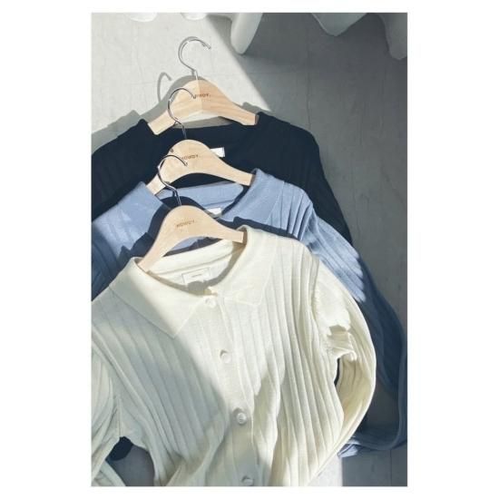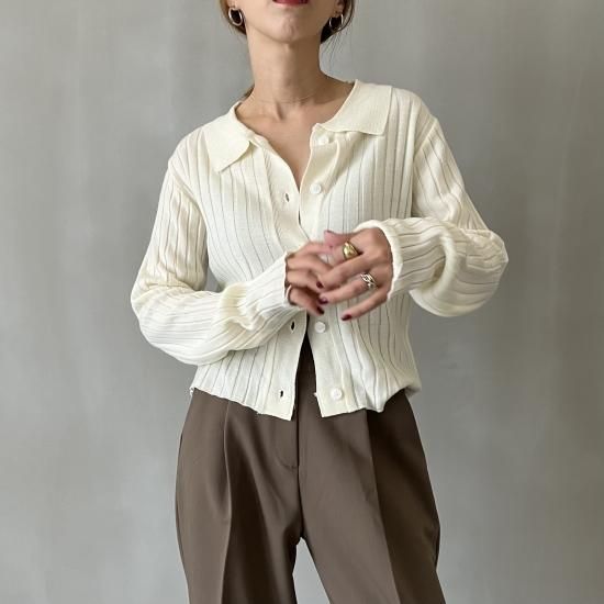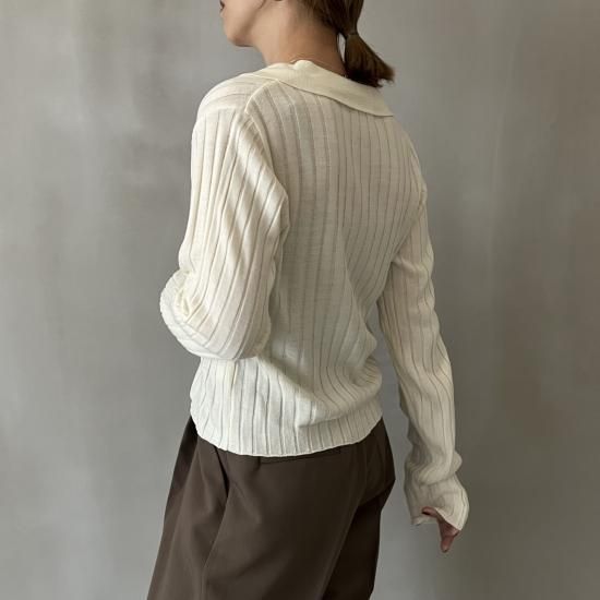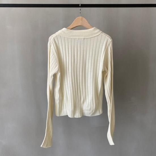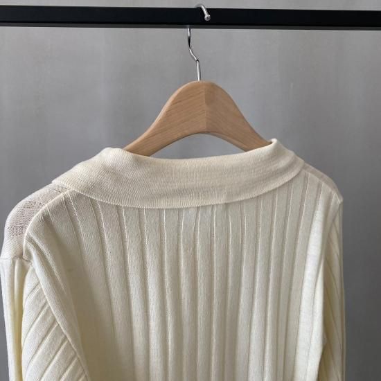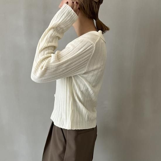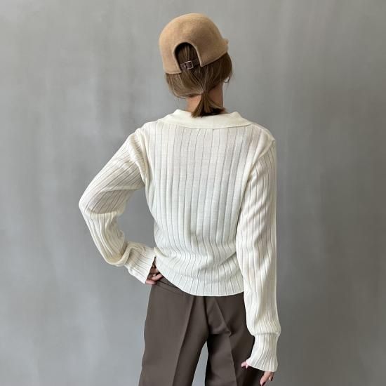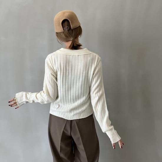 プルオーバーのようにも、カーディガンとして羽織りとして着ることも出来る襟付きニット