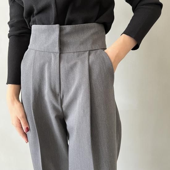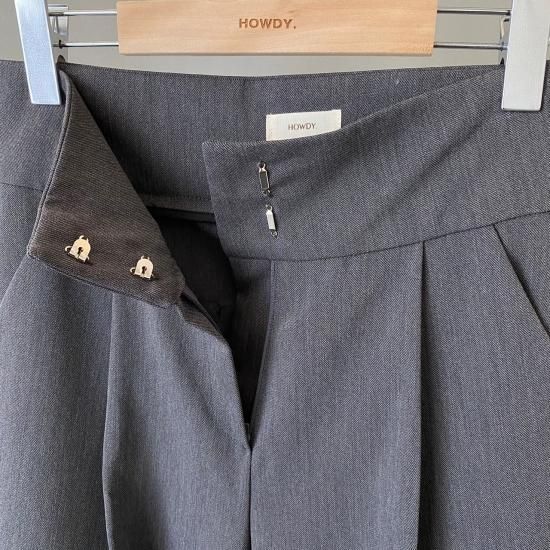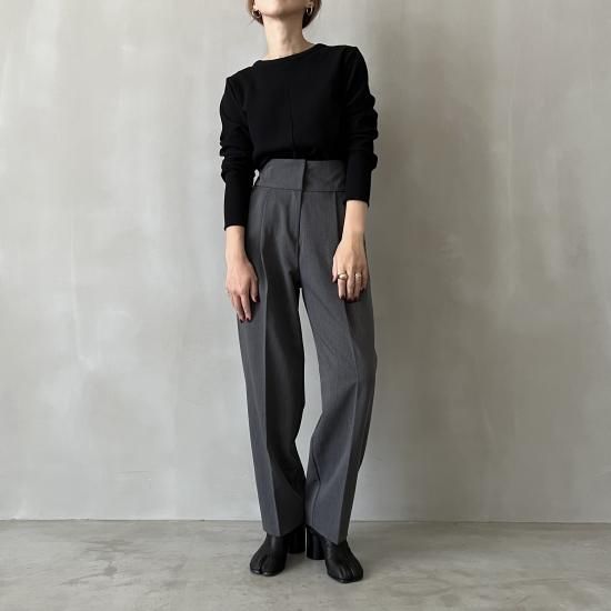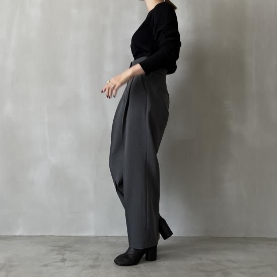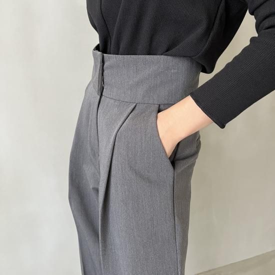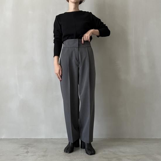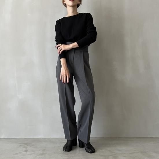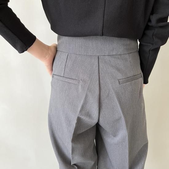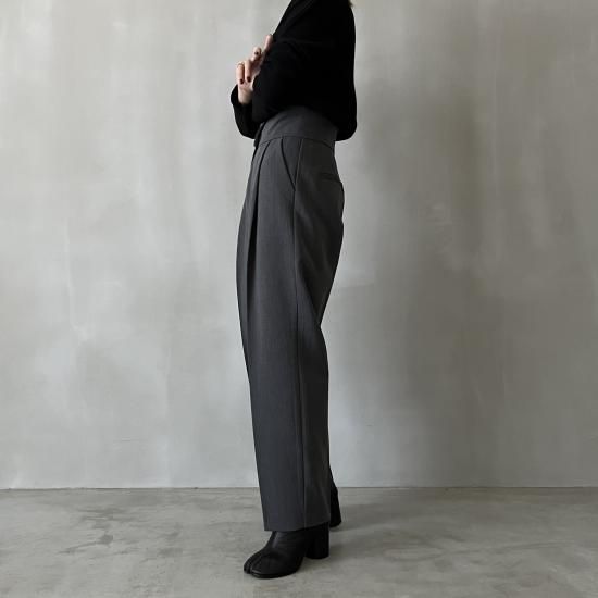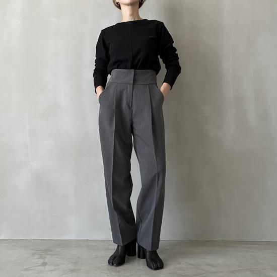 太ももから裾にかけてはゆるめのカーブをつけ程よいゆとりがボディラインを気にする事なく着用いただけます