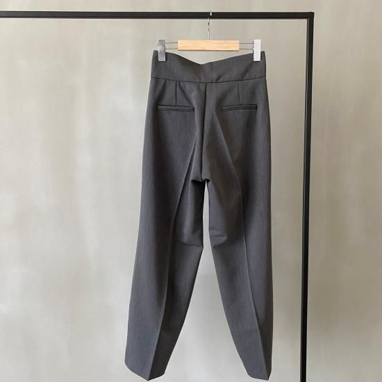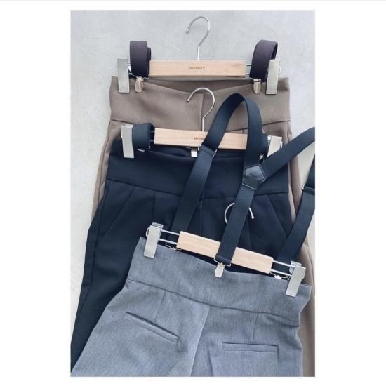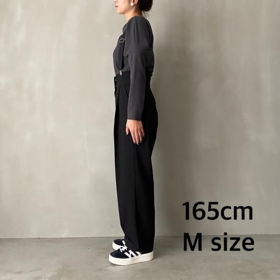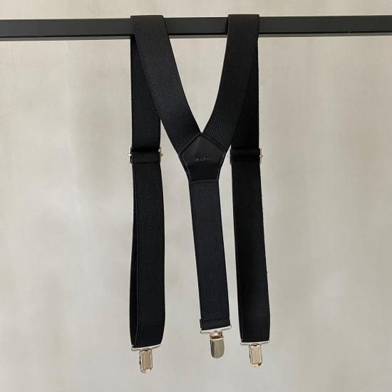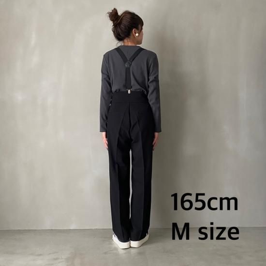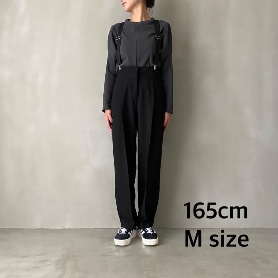 サスペンダーを合わせると、よりタキシードパンツを思わせるマニッシュな着こなしに…