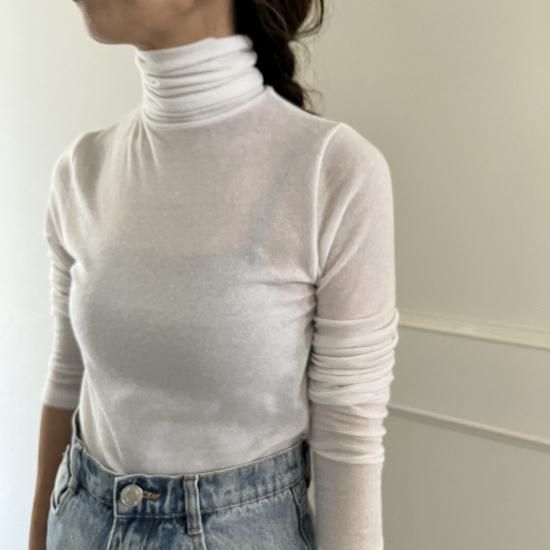 sheer turtle knit(white)