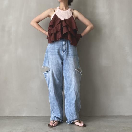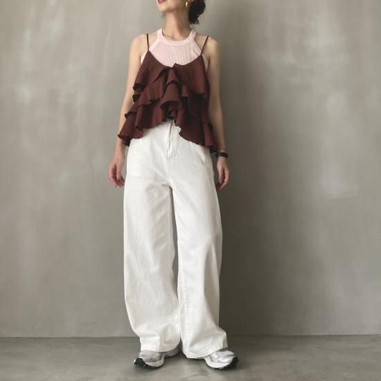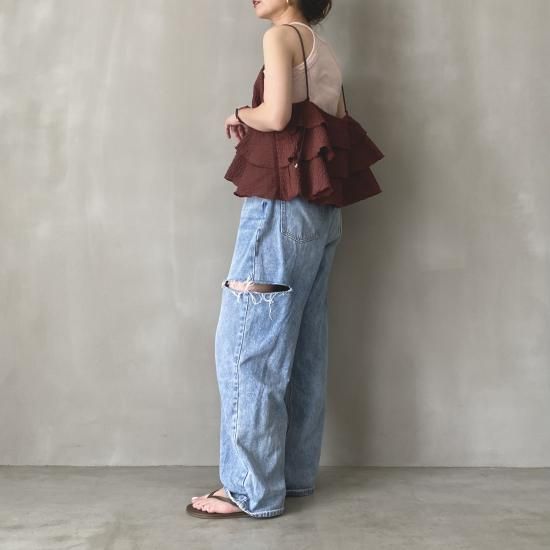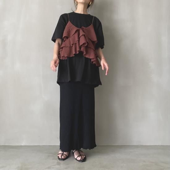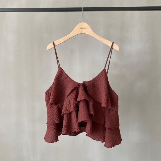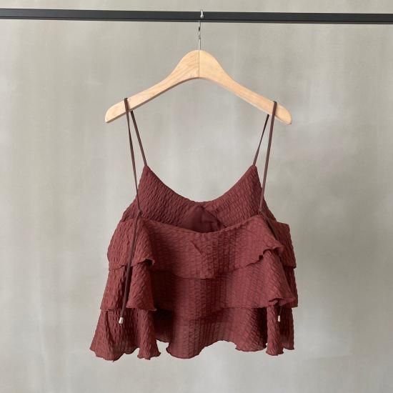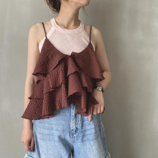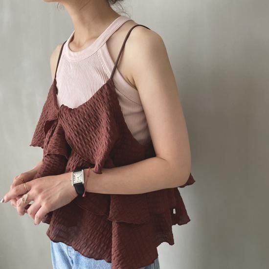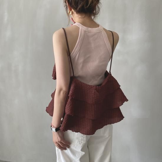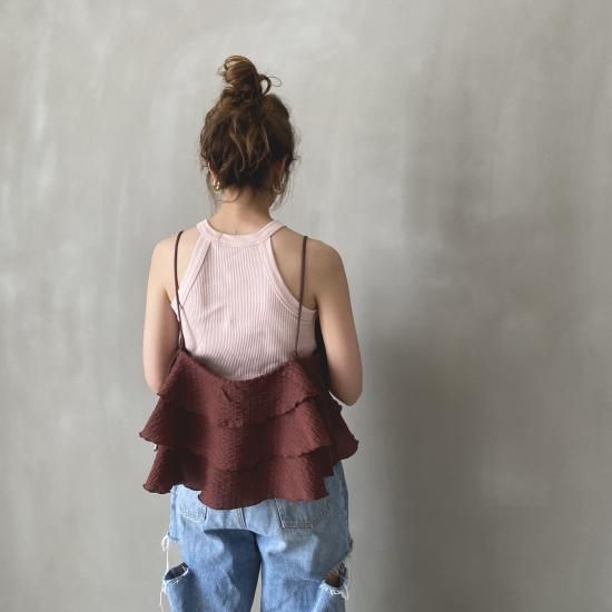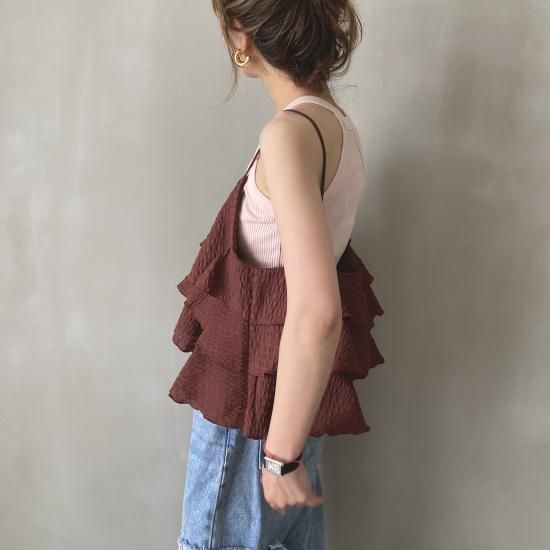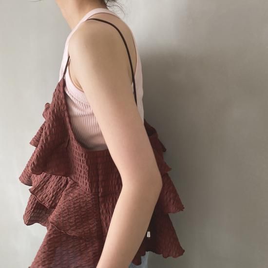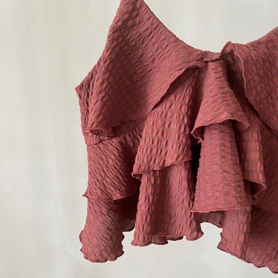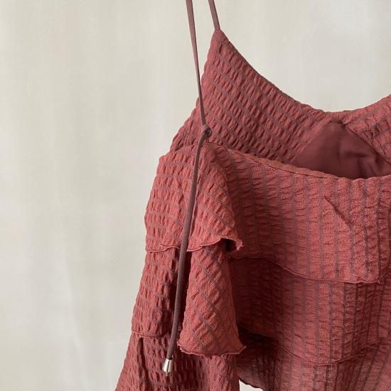 シャドーストライプとポコポコとした表面感が特徴的な素材のビスチェ