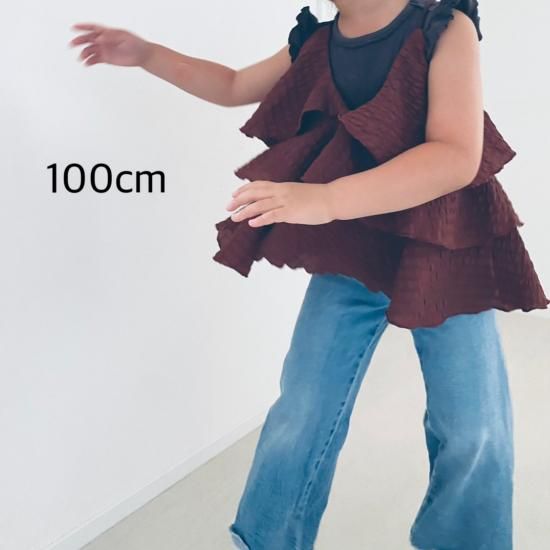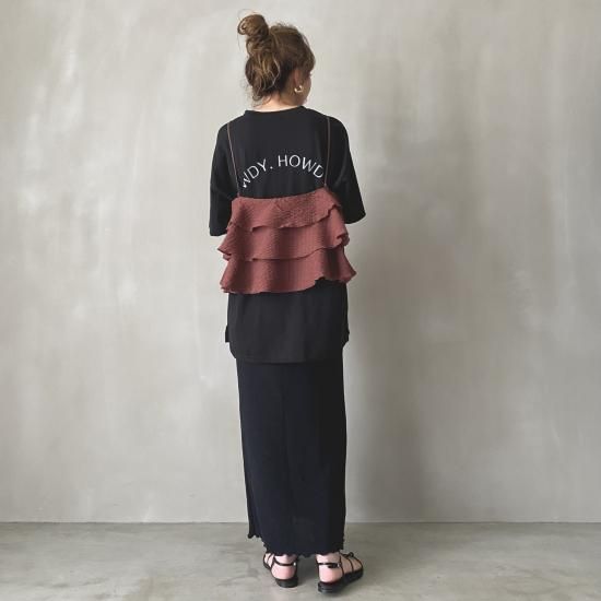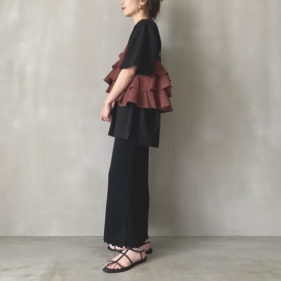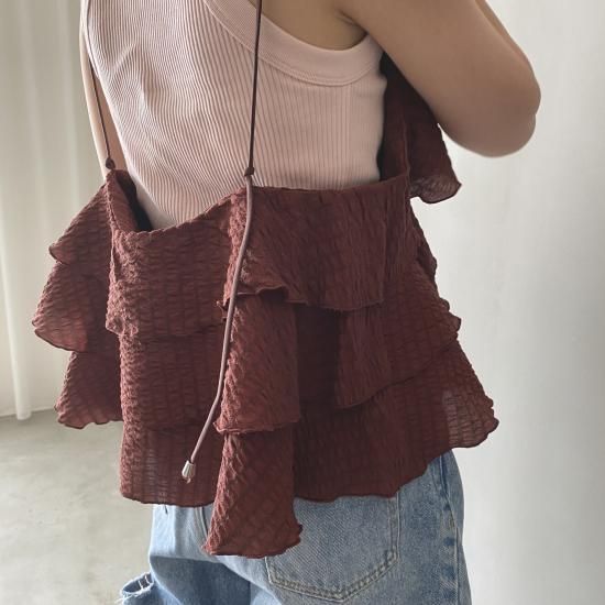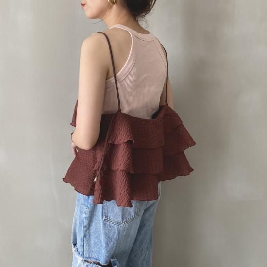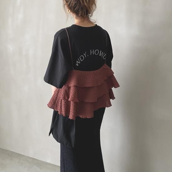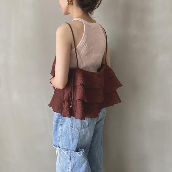 ワンピース同様、胸元から後までグルリと施した大きな2段フリルがポイント