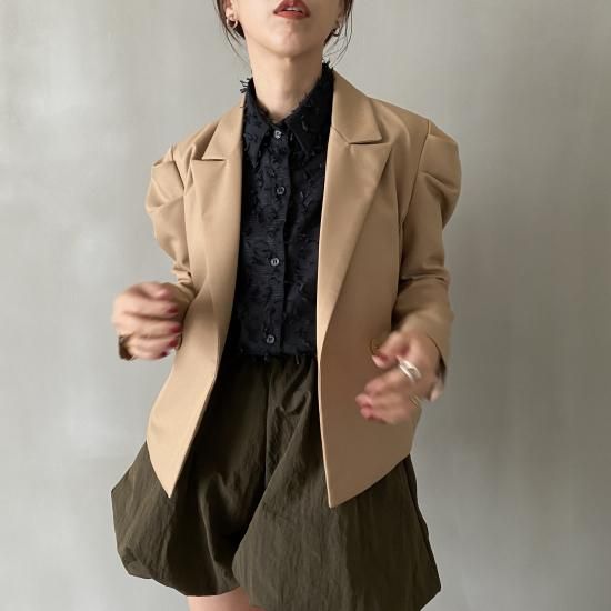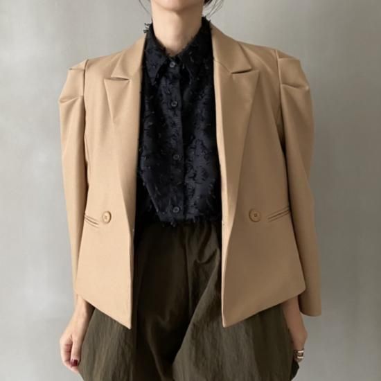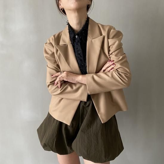 絶妙な着丈・袖丈に拘り、肩パットは省きタックスリーブにする事で見た目も着心地も良くなり、ハンサム+可愛い を兼ね備え尚且つモードすぎず、エレガントすぎず、どんなシーンにも合わせやすく仕立てました