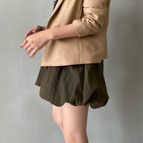 存在感のあるボリュームと立体的なフォルムが特徴的でミニ丈×ボリュームたっぷりのふんわり感が足をほっそりと見せてくれる嬉しい効果も