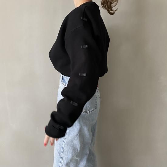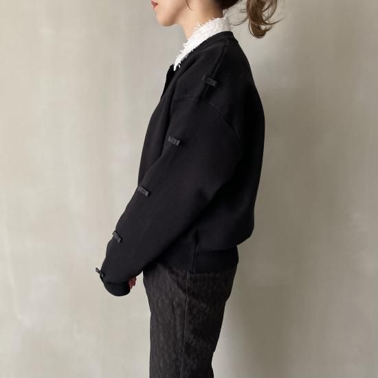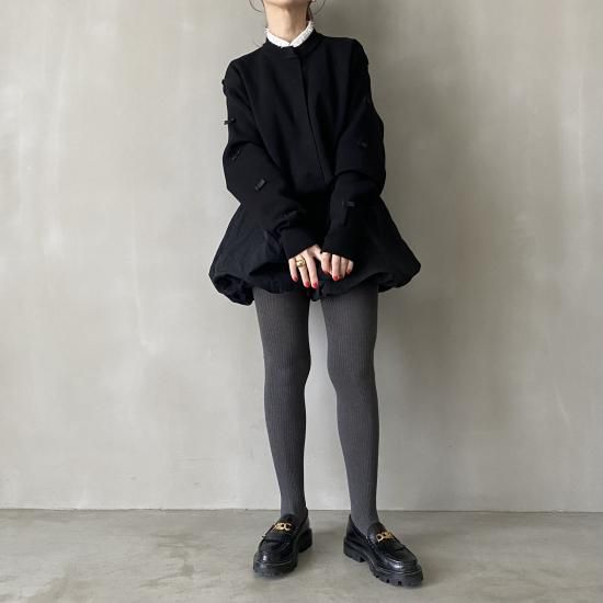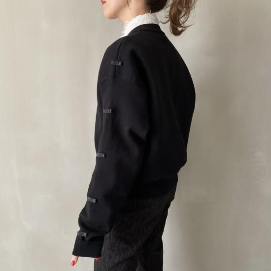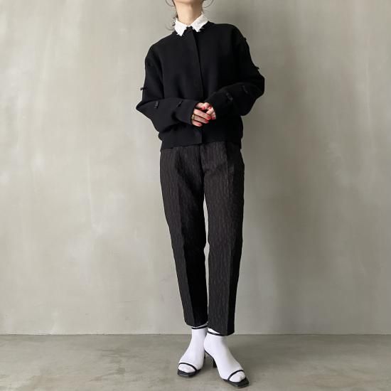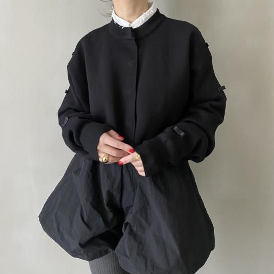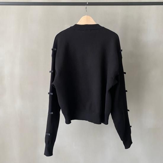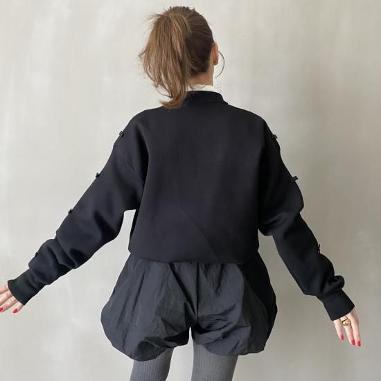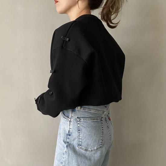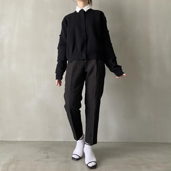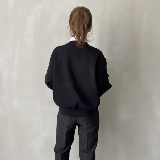 袖に施したリボンが目をひくリボンスリーブカーディガン