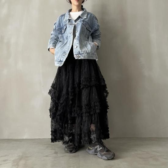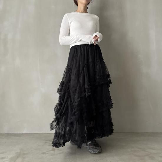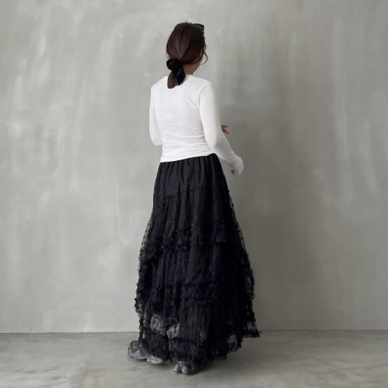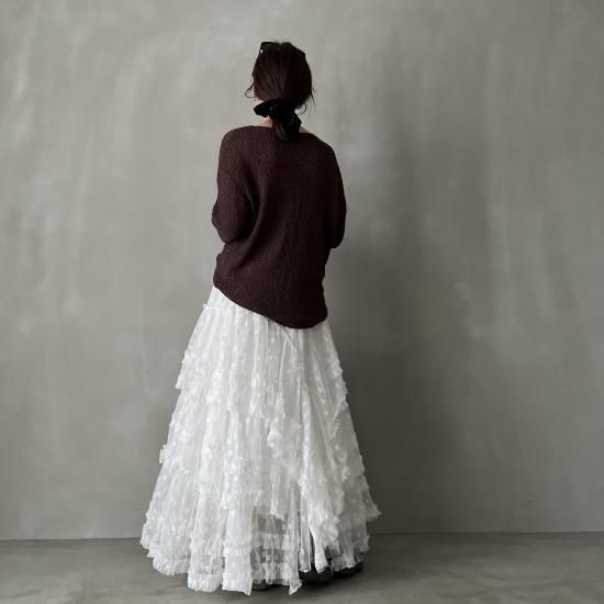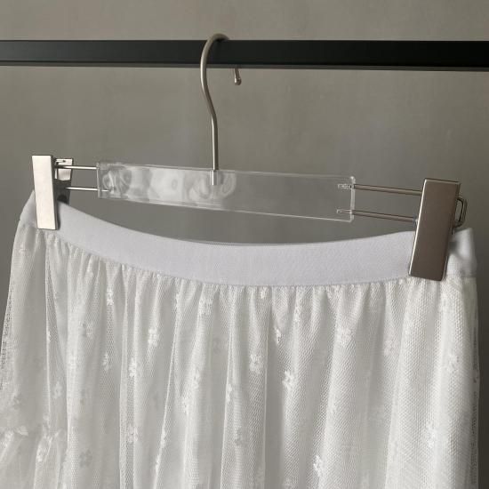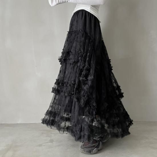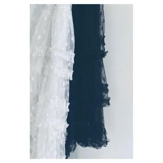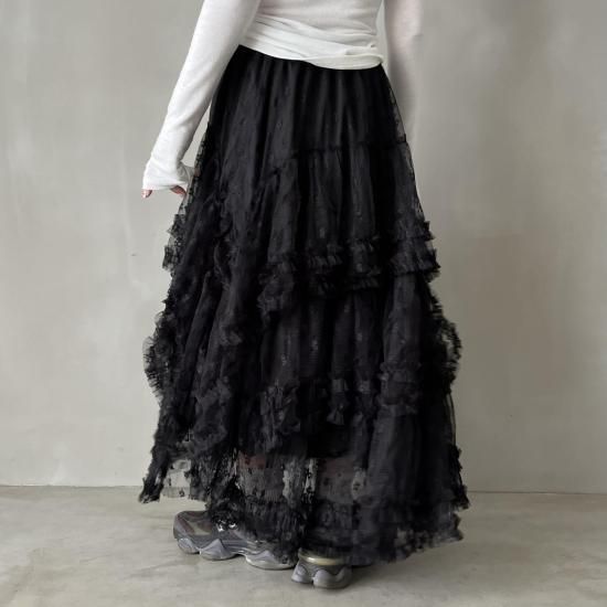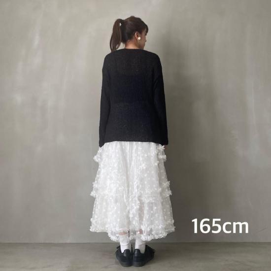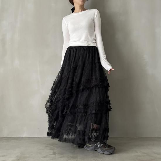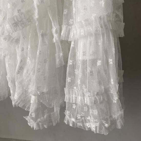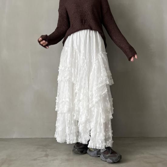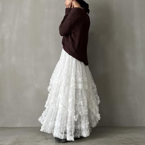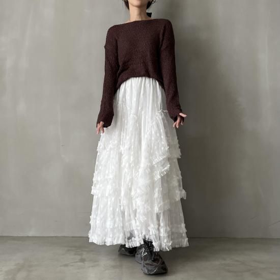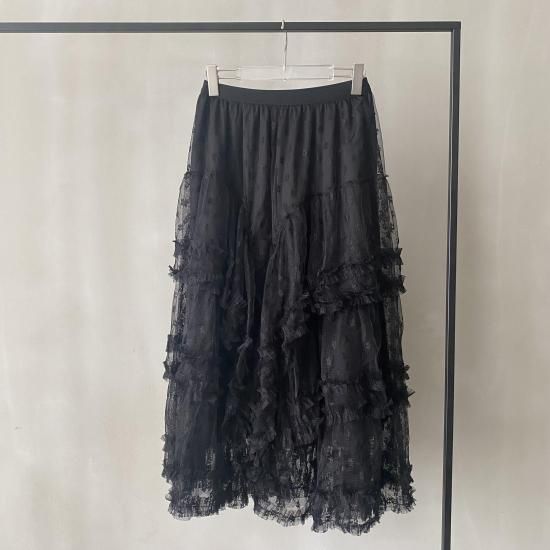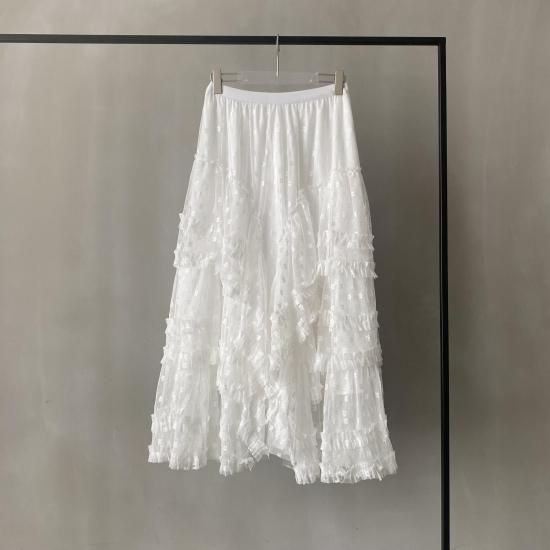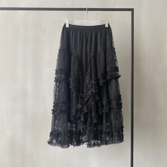 繊細なフラワーチュール生地を贅沢に重ね、華やかさと存在感を兼ね備えたスカート
