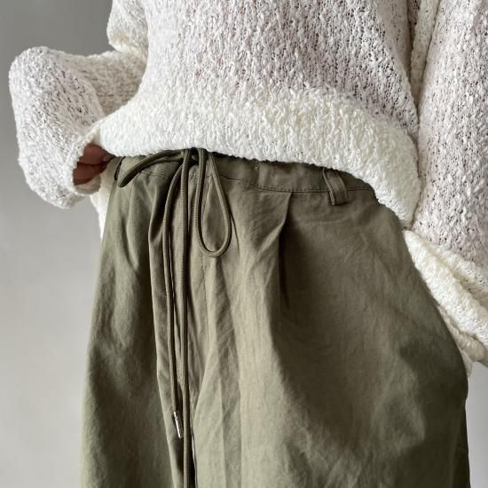 膝下のタックがクシュッとしたドレープ感をプラスすることで存在感のあるワークディテールに拘りました