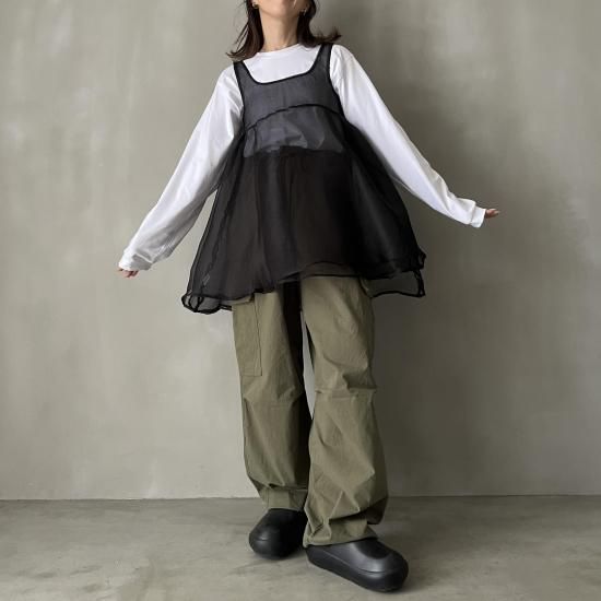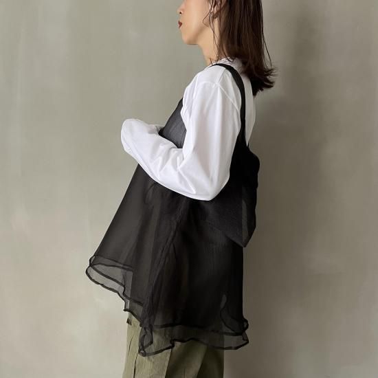 エアリーなオーガンジー素材を重ねたノースリーブチュニック